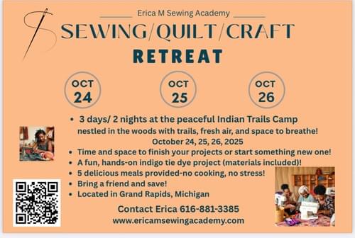 Step away from the hustle and bustle and immerse yourself in a peaceful, creative getaway at our Sewing Quilt Retreat. Set at the scenic Camp Indian Trails, this three-day retreat offers the perfect opportunity to focus on your sewing or quilting projects—whether you’re starting something new or finally finishing that long-standing WIP.